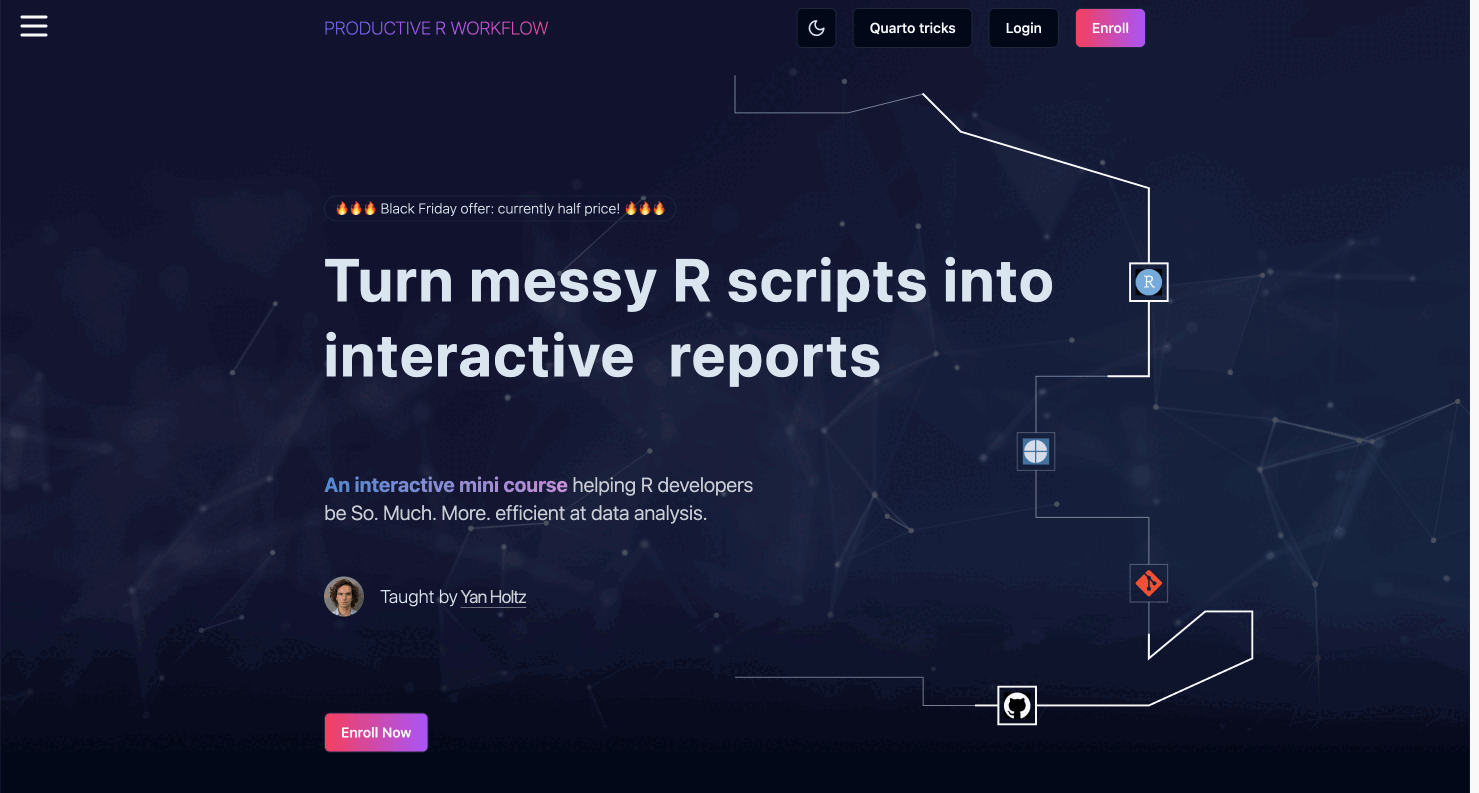 - Master R: Join my productive R workflow online course, already helping hundreds to excel in R, Quarto, and GitHub.