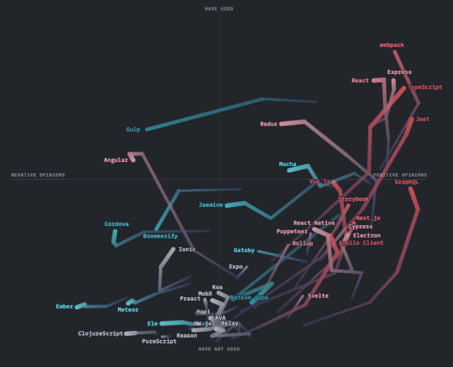 About nine years ago I discovered the world of web development, and it is very easy to get lost in the jungle of tools. This visualization by Amelia Wattenberger solved a big frustration for me and clarified an ecosystem that initially felt overwhelming.