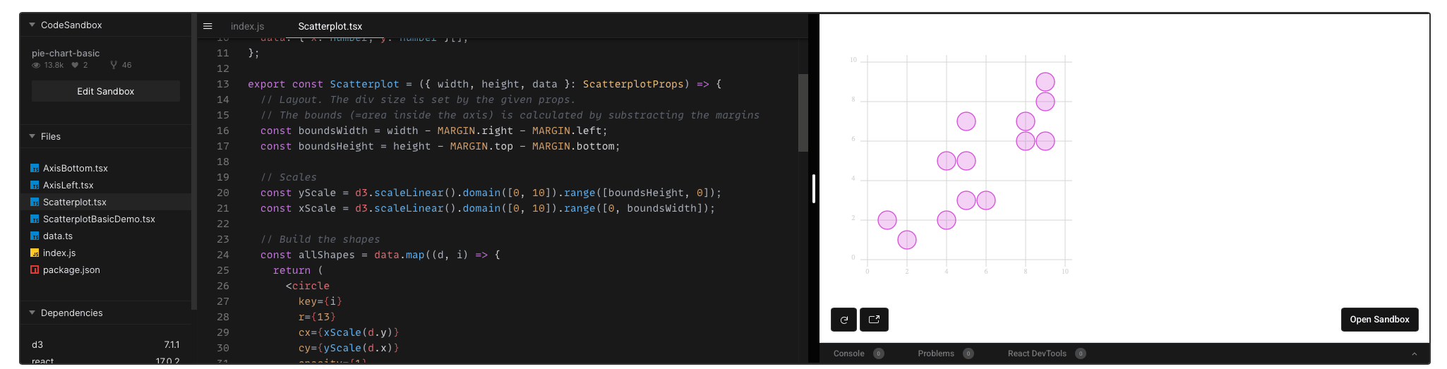 If you're interested, I made an interactive sandbox with the most simple scatterplot you can do with d3.js!