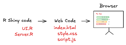 Tools like Shiny act as a wrapper: they let you write R code that magically generates HTML, CSS, and JS behind the scenes. We call it a layer of abstraction.